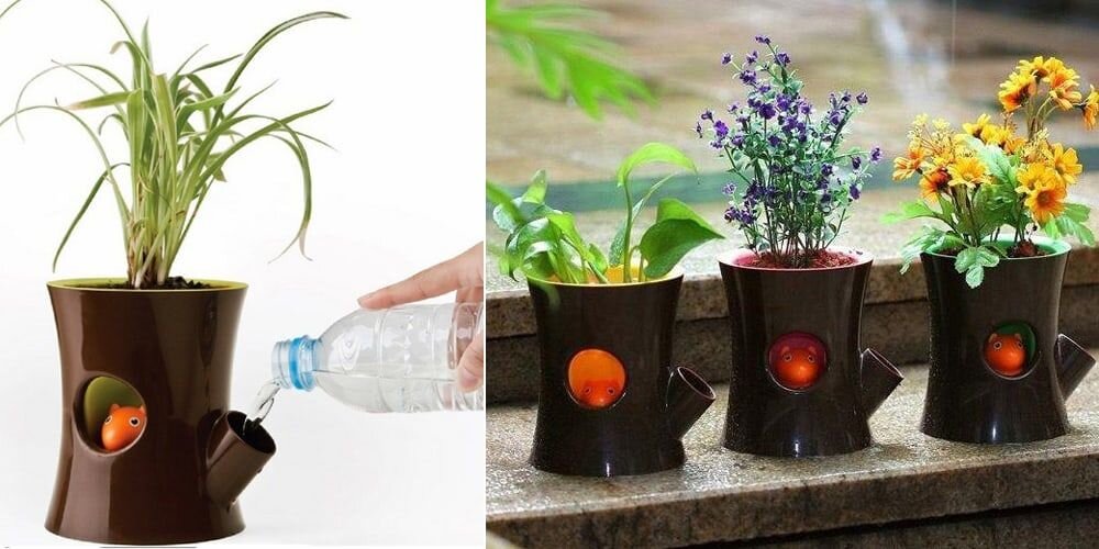 До чего дошла техника, сейчас чего только не придумывают. Нашла вчера интересный само-поливающийся горшок для цветов. Выглядит очень оригинально. О функционале пишу ниже. На фото выше представлен данное чудо. Принцип работы заключается в том, что вы наполняете через отверстие сбоку резервуар с водой. Дальше эта вода по ниточке уходит к корням растения в верх, обеспечивая растение правильным количеством влаги, без залива. Как я поняла, белочка внутри это индикатор наличия воды в горшке. Когда вода заканчивается, белочка прячется в низ. Объем воды в горшке 500 мл.. Этого количества воды хватит примерно на 10 дней(зависит от растения).Так же несомненным плюсом является то,что в воду можно вносить жидкие минеральные удобрения для подкормки. Для подарка очень неплохая идея, очень оригинально и красиво выполнен. Материал кстати пластик. Стоимость такого горшка примерно 2 тр..