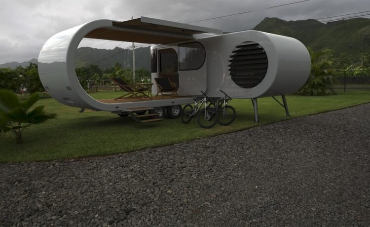 Недавно новозеландская архитектурно-дизайнерская компания W2 представила первые фотографии своего нового проекта – жилой автофургон Romotow с безумно стильной складывающейся кабиной и встроенным солярием. На его создание ушло не менее восьми лет, и наконец-то компания объявила о скором начале серийного производства. В сложенном состоянии этот аэродинамический трейлер может прекрасно функционировать как малолитражный автоприцеп. Но конструкция спроектирована так, что кабину можно выдвинуть из основного корпуса, образовав L-образный кемпер, с собственной твердой открытой террасой, поднятой над землей. Таким образом, создается стильное и роскошное мобильное жилое пространство, которое позволяет владельцам наслаждаться окружающим пейзажем. Открытая терраса оснащены аккуратными выдвижными солнцезащитными козырьками, а кабина имеет гигантское изогнутое переднее окно, специальные крепежи для установки солнечных панелей приличного размера на крыше и приятный округлый диван в интерьере