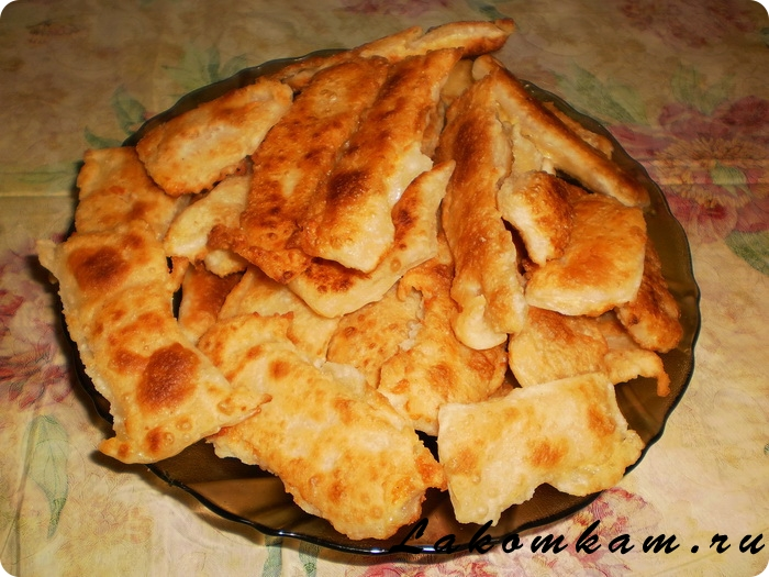 Вторым пластом накрываем и защипываем края. Разрезаем на небольшие полоски.