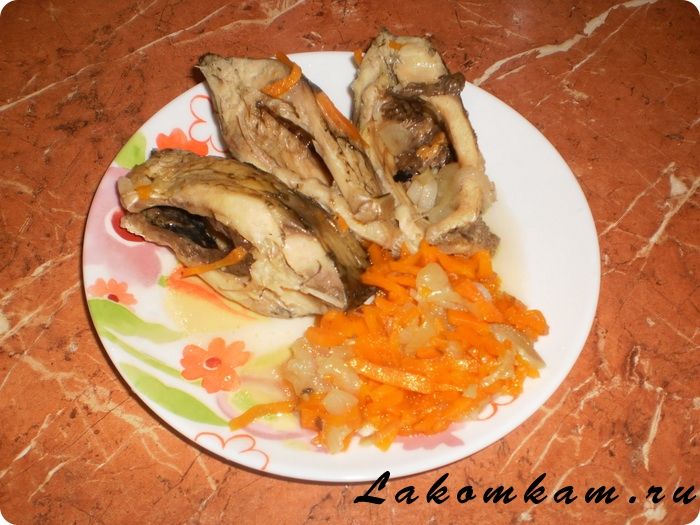 Ингредиенты: караси — 1 килограмм; морковь — 1 штука; репчатый лук — 1 штука; растительное масло — 2 столовые ложки; вода — 1 стакан; томатная паста — 1 столовая ложка; соль и специи — по вкусу; лавровый лист — 2 штуки.