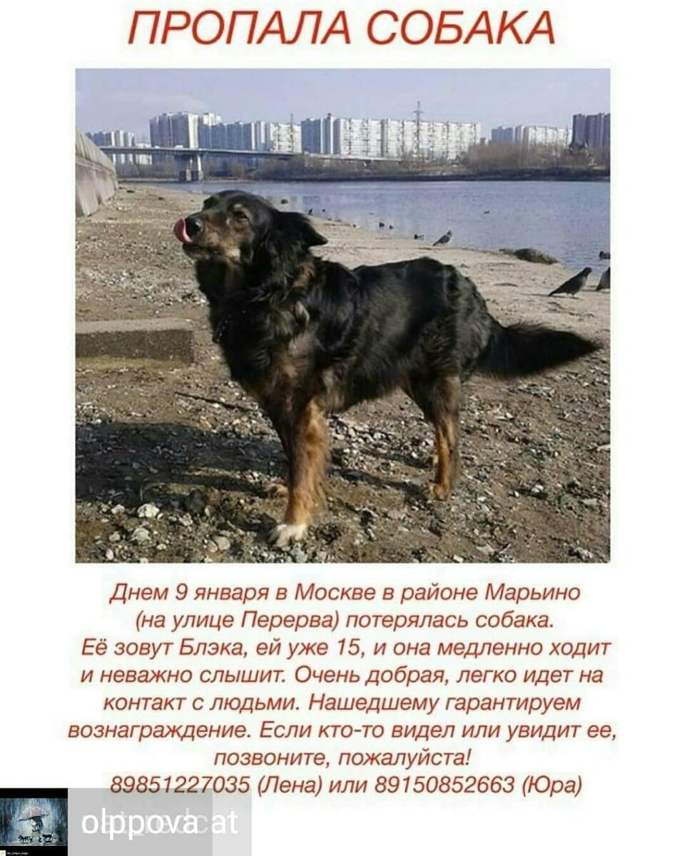 Друзья, даже в нашем небольшом районе поиска животных 👉 https://vk.com/zoopoiskuao многие собаки до сих пор НЕ НАЙДЕНЫ. Куда пропадают собаки? Сотни объявлений, мониторинг приютов и отловов и все в пустую! Но потерявшие- не сдаются! Но как мы знаем из предыдущих моих статей, собаки могут уехать далеко и на автобусе и на электричке и конечно, их могут увезти. 🚕🚌🚈 В этой статье будут объявления о собаках, пропавших примерно месяц назад на Юге Москвы, но они могут быть где угодно! ⚠️ А вам советую повесить АДРЕСНИК на собаку, а если она не подпустит чужих то gps трекер. Люди не скупятся на огромные суммы при вознаграждении, а вот купить такое " руки не доходили".. Никаких самовыгулов и прогулок без поводка. Никогда не оставляйте собак у магазина одних. " Наша собака не такая, с нами ничего не произойдёт" - слышали, знаем, громче самоуверенности потом только коровьи слезы... Подробная информация в моей группе 👉 https://vk.com/zoopoiskuao ВАЖНА ЛЮБАЯ ИНФОРМАЦИЯ! Помогите распростран