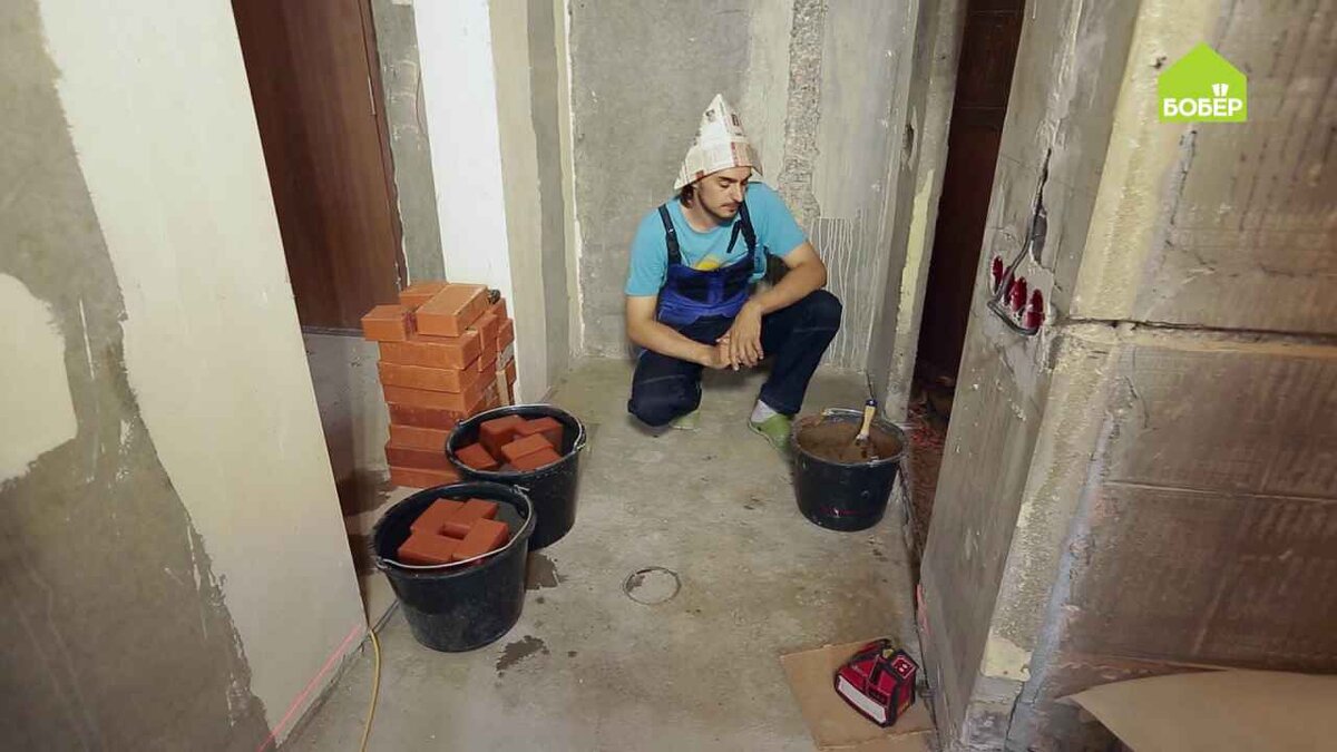 В некоторых местах понадобятся половинки кирпича, которые легко можно получить, воспользовавшись болгаркой.