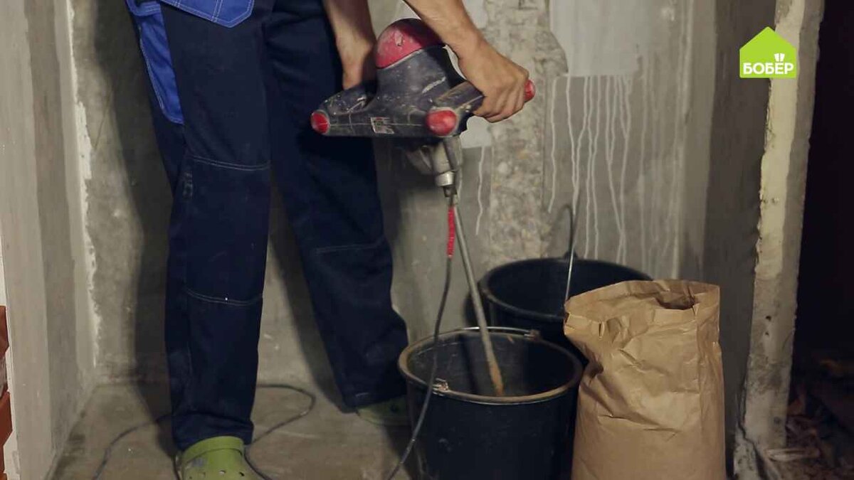 Приготовьте раствор, используя глиняную базовую штукатурку. Пропорции, как правило, указываются на мешке. В нашем случае по консистенции раствор должен быть похож на творог.
