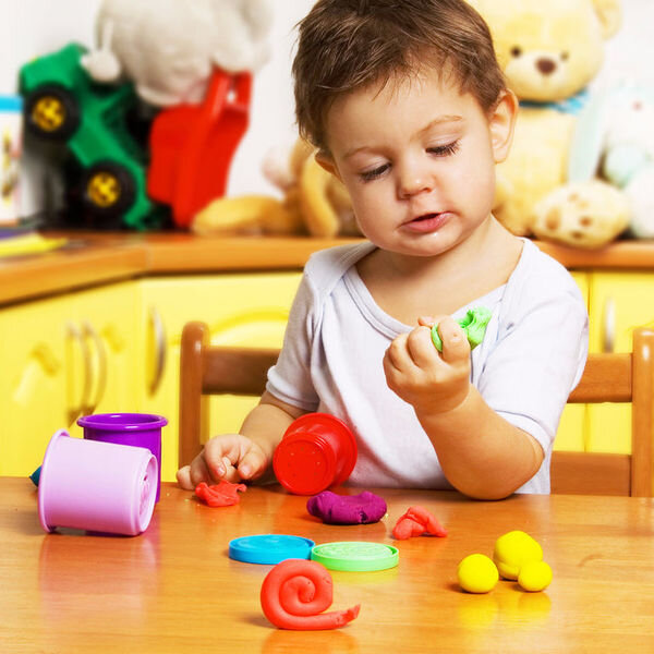Тесто для лепки и полимерная глина массируют кончики пальцев, улучшают тактильную чувствительность, развивают фантазию и аналитические способности. Ребенок именно во время лепки может начать изучение геометрических фигур, научится сочетать их. Самым маленьким скульпторам подойдет соленое тесто, детишки могут пробовать его на вкус — это совершенно безвредно. Ребята постарше могут лепить фигурки из глины — поделки затвердеют и их можно будет сохранить на память.