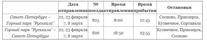 Дополнительные "Ласточки" в Рускеалу в феврале и марте