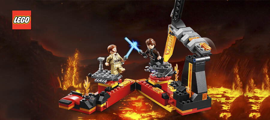Первый конструктор – Бой на Мустафаре, переносит нас во времена великого истребления джедаев. Этот баттл между двумя персонажами Оби-Ваном и Энокином Скайуокером происходит на разрушенной лавой фабрике. Конструктор состоит из 208 деталей, в нем много интересных элементов и есть несколько полезных функционалов.