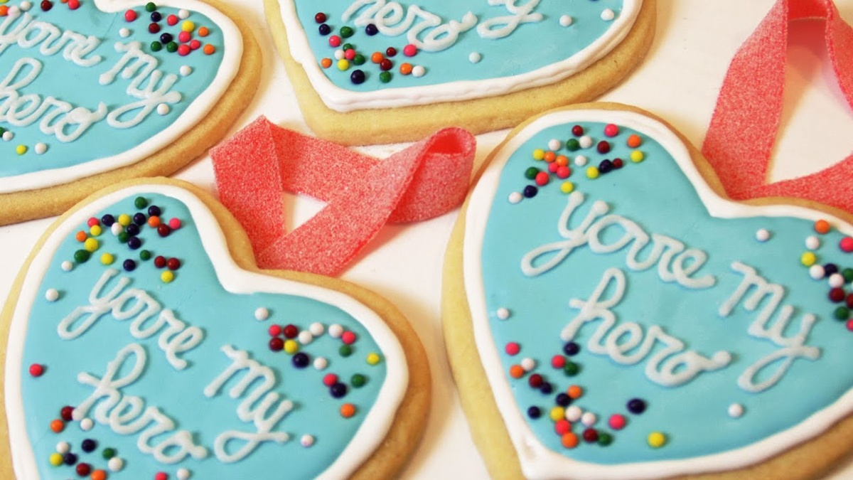 Ингредиенты: 250 г муки ¼ ч. л. разрыхлителя 125 г сливочного масла 100 г сахарной пудры 1 яйцо 1 ч. л. ванильного экстракта Глазурь: 480 г сахарной пудры 2 яичных белка 1 ч. л. лимонного сока синий краситель Способ приготовления: Просейте муку и разрыхлитель. В другой миске миксером взбейте сливочное масло и пудру, постепенно добавляйте яйцо и ваниль. Добавьте муку и раскатайте тесто. Заверните его в пищевую пленку и поставьте в холодильник на 30 минут. Разогрейте духовку до 180 градусов. Выньте тесто из холодильника и раскатайте его до 5 мм. Вырежьте печенья в форме сердца, разложите их на противень на бумагу для выпекания и поставьте в духовку на 15 минут. Приготовление глазури: Взбейте до пены яичные белки и лимонный сок. Постепенно добавляйте сахарную пудру и взбивайте до получения однородной массы. Разделите получившуюся глазурь на две части и подкрасьте одну из них голубым красителем. Добавьте немного воды, чтобы глазурь стала чуть гуще, чем сироп. С помощью кондитерского шприц