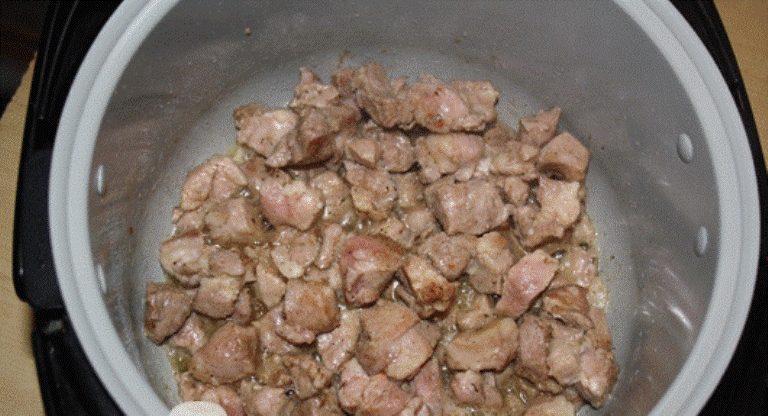 Ингредиенты: Этапы приготовления: Аджапсандал — блюдо грузинской кухни, основными ингредиентами которого являются баклажаны, помидоры, перец и много специй и приправ. Каждый повар привносит в блюдо свою «изюминку», поэтому в блюдо можно добавлять и другие овощи, а также мясо (говядину, телятину или баранину). Аджапсандал можно употреблять в пищу как горячим, так и холодным, от этого вкус блюда совершенно не испортится. Успех приготовления этого блюда зависит, в первую очередь, от качества овощей, которые войдут в его состав. Поэтому для приготовления аджапсандал всегда нужно брать только свежие овощи. Аджапсандал подают как второе блюдо, но его можно употреблять и как закуску. Некоторые хозяйки консервируют аждапсандал как заготовку на зиму. 1. Баклажан почистить, нарезать небольшими кубиками. Выложить в глубокую миску, налить воду, дать постоять, чтобы исчезла горечь. Мясо нарезать на кусочки средней величины, посолить, поперчить. Выставить на мультиварке режим «Жарка» на 30 минут,