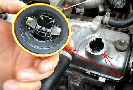- Откручивая на рабочем двигателе масло заливную горловину можно убедиться в исправности двигателя . Если в процессе когда работает двигатель мы откручиваем пробку и отсюда идет дымок то уже проблемы с кольцами . Автомобиль с масло заливной горловины которого идет дым я не рекомендую покупать так как он уже очень много прошел двигатель очень сильно увалин .