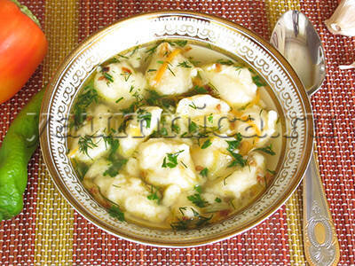 Суп с клецками пользуется популярностью. Его можно на курином, мясном или овощном бульоне. Добавить можно макаронные изделия или крупу. Обычно клецки готовят из муки, яйца и воды. Но можно приготовить их и из картофеля. Я хочу вам предложить рецепт куриного супа с картофельными клецками и гречкой. Суп получается наваристым и очень вкусным. Готовится он просто. Для его приготовления нам будут нужны вот эти ингредиенты: