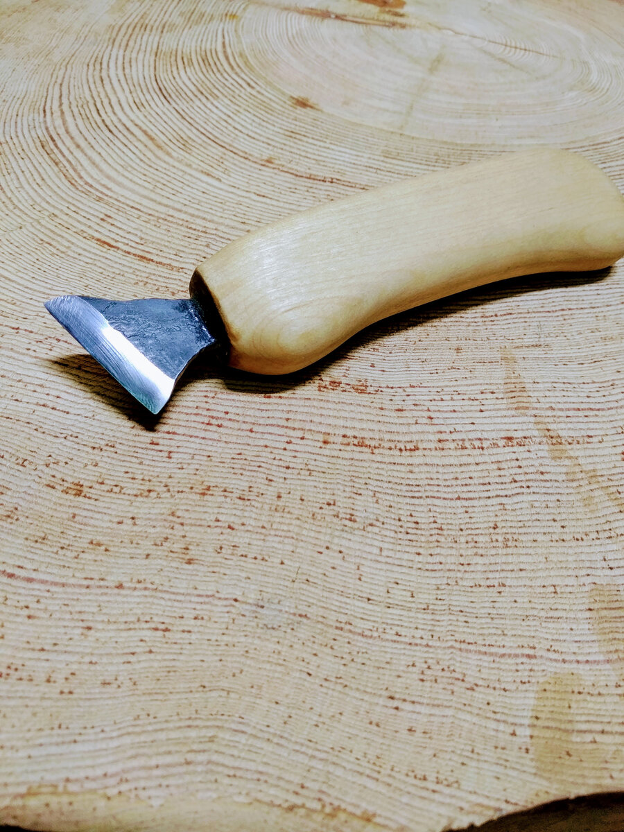 Резец-топорик готов к работе. Длина лезвия у меня получилась 30мм, а общая длина резца 150мм.