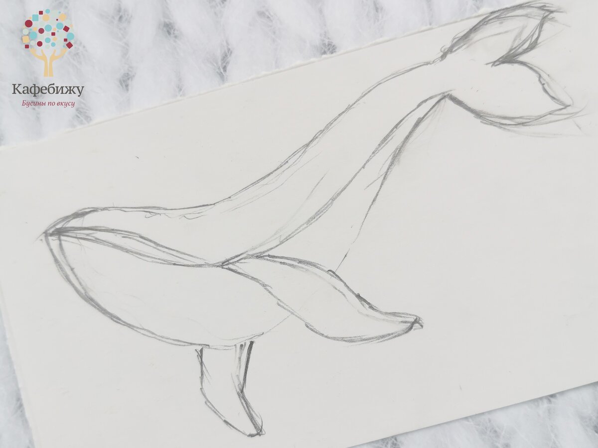 Приложите кита к картону и обведите по контуру, а затем начертите еще один контур внутри, отступив 3-5 мм от первого.