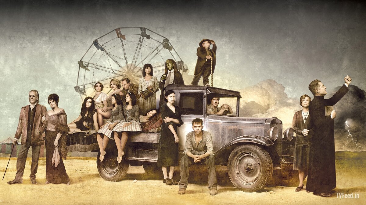 Итак, следующей темой для обзора я выбрал американский сериал "Карнавал" канала HBO, выходивший на экраны с 2003 по 2005 год и насчитывающий 2 сезона по 12 серий. Действие разворачивается в Америке в период Великой депрессии и "Пыльного котла" 1934-1935 годов, атмосфера которых находит полное отражение на экране и реализована наверно даже слишком хорошо. Картинка реально депрессивная, атмосфера давящая, действие развивается натужно и "как кота за яйца". После просмотра хочется откашляться, ибо кажется, что у тебя полный рот и глаза пылищи. Даже сейчас составляя обзор, вспоминая сериал и впечатления от него, появляется этот привкус и запах бесконечной дороги и поднятого пыльного шлейфа за караваном.