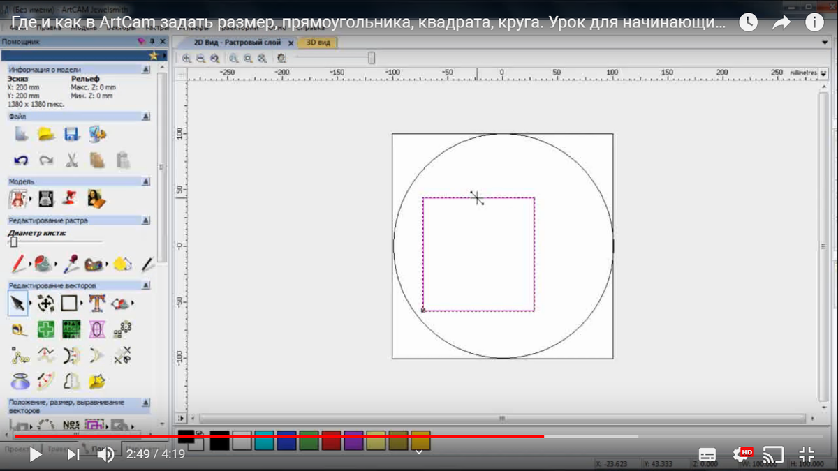 ArtCam как задать размеры, прямоугольник, квадрат, круг. В Artcam начало работы, мы начнем с геометрической модели, моделируем в ArtCam вектора круга, прямоугольника квадрата. Пошаговый урок для начинающих в ArtCam как задать размер. Смотрите видео, подписывайтесь!