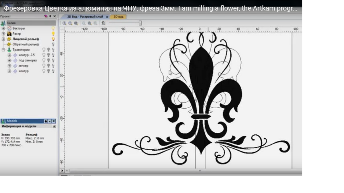 ArtCam УП из рисунка, Фрезеровка ЧПУ Цветок Лилии из алюминия. Фрезерованная Лилия в Artcam из рисунка, сделаем поделку своими руками. Фрезеровка на ЧПУ станке, по векторам. Цветок геральдическая Лилия из алюминия. После фрезеровки узора, обработаем пескоструем и покрасим, получается красивый цветок в виде крючка, подвеса для штор или крючки для декора. Подойдёт для дома в коридор или просто на свое усмотрение. Механическая обработка с Управленческой Программой Арткам. Похоже на резьбу по дереву? Freze CNC üzerinde alüminyum çiçek, 3mm freze. Artkam kontur işleme programı. Bir çiçeği öğütüyorum, Artkam programını, bir değirmeni 3 Çiçek alüminyumdan Lily'yi öğütdü, çizimden Artcam'da dekorun detayını kendi ellerimizle yapacağız. Bir CNC makinesinde vektörlerle frezeleme. Alüminyumdan çiçek hanedan lily. Deseni, kumlama ve boyayı öğüttükten sonra, bir kanca, perdeler için bir süspansiyon veya dekorasyon için kancalar şeklinde güzel bir çiçek elde ederiz. Koridordaki bir ev için