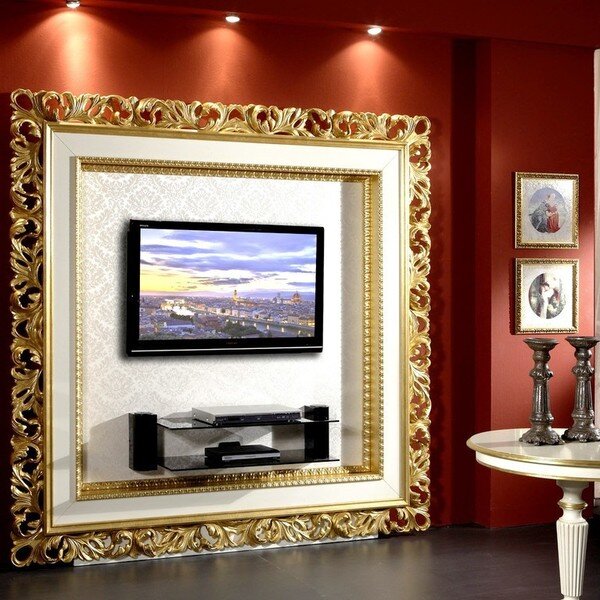 Я знаю очень мало интерьеров, где телевизор смотрелся бы гармонично. И все потому, что к нему относятся довольно утилитарно и вопросы его декора решают по остаточному принципу. Но, согласитесь, странно, когда в дизайнерских апартаментах с роскошным ремонтом телевизор выглядит как «пришелец» из космоса – абсолютно неуместно и инородно? Поэтому я и решила собрать коллекцию интересных идей, чтобы избежать этой типичной для многих досадной ошибки. Вот семь приемов, как найти телевизору в интерьере достойное место. 1. Традиции и современность Самое банальное и традиционное решение – расположить телевизор на специальной корпусной мебели. Но куда более эффектный, но при этом не менее функциональный вариант, – современные модульные панели под технику, обрамленные в красивую раму с полками: 2. Телевизор как часть галереи Можно повесить плазму на стену. Но одиноко висящая, она будет смотреться некрасиво. Так что советую вам вписать телевизор в вашу картинную галерею: 3. Телевизор в багете А вот