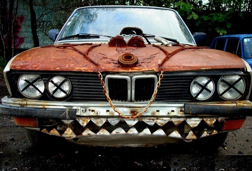 Это BMW E28 недавно прибыло из ада в мир интернета, и так же в свой ад и отправилось, ибо хозяин быстро потерял интерес к своему проекту. Все началось с мелкой аварии, в результате которой был поврежден капот, нашли другой, но ржавый. красить не стали. Наоборот довели ржавчину до модного состояния. Навесные детали появились уже на позднем этапе ... В результате еще одной аварии, пошло прахом крыло. Решили восстановить его целостность вот таким хитрым способом. Судя по всему стальные куски метала то ли на заклепках, то ли на саморезах. Для красот сделали весь кузов таким ... В итоге стукнул мотор. А его как известно так по модному не сделать. Машину просто выбросили в начале гнить во дворе, после чего как говорят знатоки она оказалась в цветмете. Вот такая вот пугающая история сегодня .... С Вами был канал Брошенные Авто.