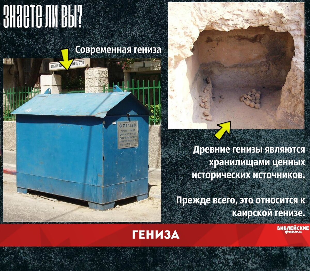 Древние генизы являются хранилищами ценных исторических источников они могли находится в пещерах или в спец местах.