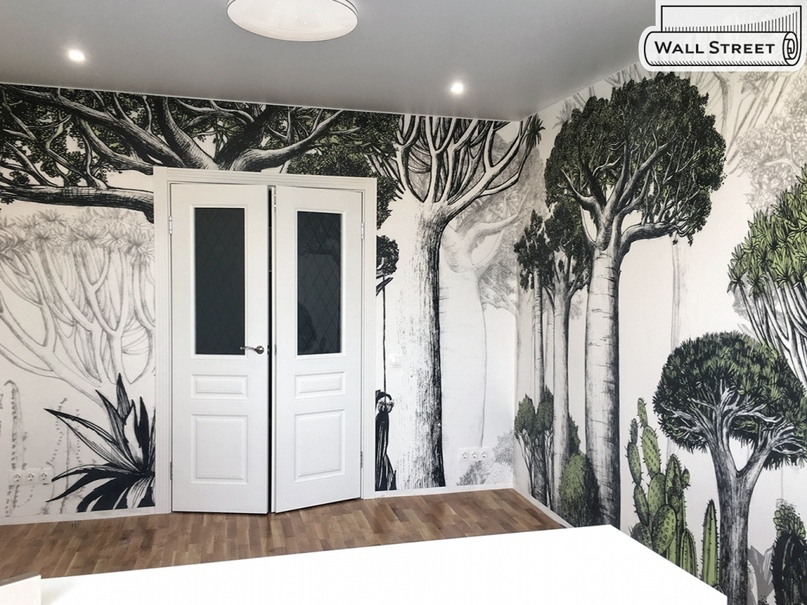 Ольга была в процессе покупки квартиры, когда обратилась к нам и уже думала о ремонте. В нашем инстаграм выбрала изображения, которые нравятся и хотелось, чтобы это было одно большое изображение на 3! стены. Все изображения - разработка нашей студии - Коллекция "Zoo". Нельзя однозначно сказать, что она для детей или для взрослых - она для всех. Из этой комнаты будем делать детскую с баобабами, вы увидите как обои расширят пространство. Обмерный план), который сделала Ольга. Дизайнер подготовила раскладку изображения на три стены. Учтены двери, углы и окно. Всегд