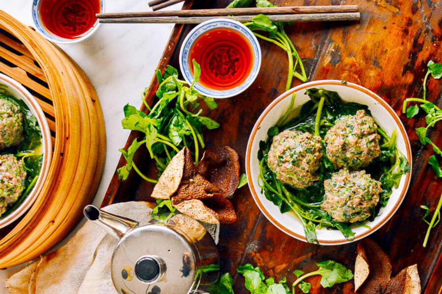 Ингредиенты: 400 г – говяжьего фарша 100 мл – холодной воды ½ ч.л – пищевой соды 1 шт – яичный белок 2 ч.л – шаосинского вина ½ ч.л – измельченного или натертого имбиря 1 ½ ч.л – мелко нарезанного зеленого лука 5-6 – веточек кинзы 2 пучка – кресс-салата 1 ч.л – сушеной кожуры мандарина (измельченной в ступке) 1 ст.л – кукурузного крахмала ¼ ч.л – измельченного кориандра молотый черный перец по вкусу 1 ч.л – сахара 1 ч.л – соли ¼ ч.л – кунжутного масла 1 ст.л + 1 ч.л – растительного масла Приготовление: Приятного аппетита! Если вам понравилось, поставьте 👍, чтобы я мог понимать предпочтения участников канала и быть более полезным. Делитесь понравившимися рецептами с друзьями, нажав кнопку "Поделиться".
