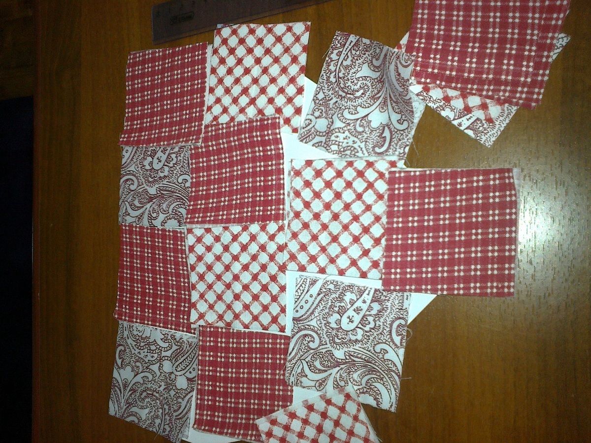 Конечно, на практику в институт одним стулом я не отделалась. Надо было еще сшить подушку с сердцем и венок в форме сердца. Должна была получиться такая сердечная экспозиция. Подушку я купила обычную в Икеа небольшого размера. Для нее купила красный кусок ткани и сшила наволочку для подушки, которую тоже нельзя снять. Это было самым несложным тогда для меня. Из остатков ткани, которые остались у меня, мне надо было сделать сердце в стиле пэчворк. Маленькие квадраты высчитывала с помощью линейки, аккуратно вырезала и научилась их сшивать вместе. Получилось красиво. У меня когда-то была идея сделать одеяло в таком стиле, только куски конечно надо больше. Из бумаги сделала выкройку сердца. И сшив уже все куски, пришила к подушке. Сразу захотелось сшить себе такую же для дома, но так руки и не дошли. Хотя идея очень интересная. Венок для меня тоже был открытием. Его я делала в первый раз. Из газеты и скотча я сделала форму сердца. На нее натянула и приклеила ткань. Купила разной