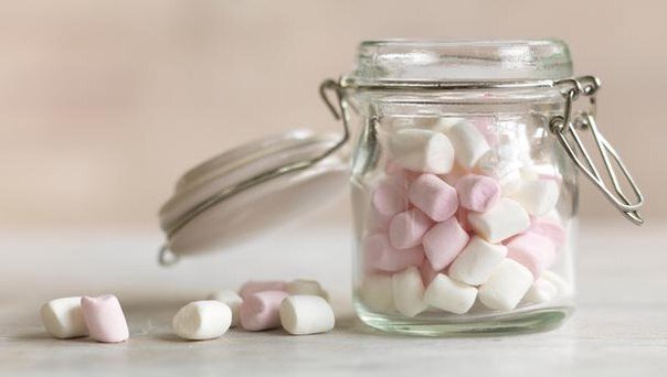 Взбейте яичные белки в миске. Медленно влейте желатин одновременно взбивая миксером на высокой скорости (взбивать около 15 минут). Когда смесь приобретет консистенцию густой пушистой пены и слегка остынет, перелить ее в неглубокую форму с антипригарным покрытием (чтобы было легко вынимать загустевшую массу). Другой способ: выложить массу на пергаментную бумагу. Распределите массу равномерным слоем и дайте полностью остыть. Охладите смесь, через 3-4 часа смесь загустеет. Разрежьте на 12 частей.