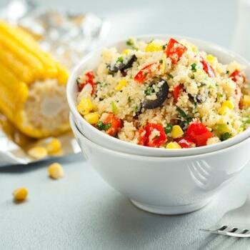 Чтобы всегда оставаться стройным, необходимо правильно питаться. Многие говорят о том, что нельзя стоит ли употреблять углеводы для того, чтобы иметь хорошую фигуру. Здесь необходимо уточнить — углеводы нужно употреблять, но только правильные. Кускус как раз та крупа, которая состоит из правильных углеводов. В 100 граммах кускуса содержится больше 72 грамм этих углеводов, и всего 0.64 грамма жиров. Калорийность этой восточной крупы довольно велика — 376 ккал, что позволяет при употреблении кускуса избавиться от чувства голода на длительное время. Самый полезный способ приготовления этой крупы — готовка на пару, это позволяет сохранить все ценные минеральные вещества и витамины в кускусе. Подавать его можно и в горячем, и в холодном виде. 1. Кускус — 120 г.