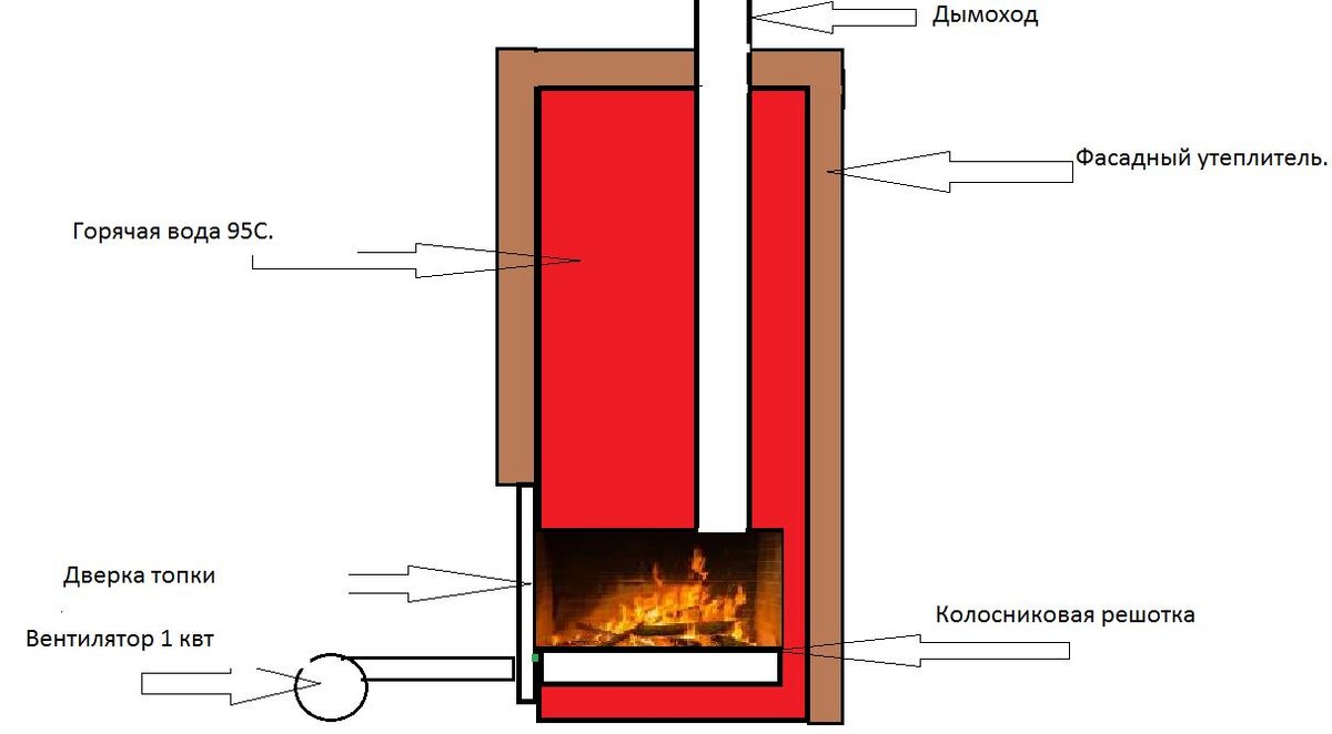Всё это уже вчерашний день, использовать твёрдотопливный котёл для отопление. В емкость(фото будет внизу описания) 3 куба встраиваем котёл. Сам теп.ор обшиваем как и положено утеплителем, и делаем над ним крышу от осадков. Ставим теплоаккумулят ближе к дровинику, предварительно залив бетонную плащадку, типа фундамента, чтоб не таскать дрова в дом или котельную как обычно все это делают. Протапливать достаточно один раз в сутки с мощным вентилятором, до 0,5 0,8 кВт мощности. Можно подбрасывать для поддержания температуры теплоносителя, пару раз в сутки, но это если на улице ниже минус -30C и ниже. Для экономного расходования запасённой энергии в ТК, я сделал циркуляционный насос через термодатчик воздуха в помещении, упала температура на 0,5 градуса насос загонит в систему горячей воды и температура в помещении восстановится на заданном вами уровне.Систему отоплениея надо делать однотрубную, как ещё её называют Ленинградка. Вентилятор нужен с клапаном, так чтоб после его выключения