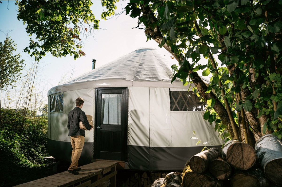 Многие молодые современные люди никак не хотят брать ипотеку и много лет выплачивать кредит, отказывая себе во всем. Их выбор - жилье подешевле, где есть лишь все самое необходимое для жизни. Молодые американцы Зак и Николь тоже мечтали о свободной и счастливой жизни. Они не хотели быть как все и селиться в обычной городской квартире. Им по душе - наслаждаться природой где-нибудь у леса, где нет лишних людей. Однажды у них возникла интересная идея - построить за городом домик-шатер в стиле кочевников. Дом-шатер обошелся молодым людям в сущие копейки. Самое интересное, что Зак и Николь никогда раньше даже не прикасались к строительным материалам. Так что это творение первое в их жизни. Им помогли лучшие друзья, которые тоже не особо разбирались в строительстве. На осуществление мечты у пары ушло около года. Однако на самом деле само строительство отняло у них не так уж много времени. Сложнее всего молодым людям было сделать фундамент. На него у начинающий строителей ушло почти 4,5 тон