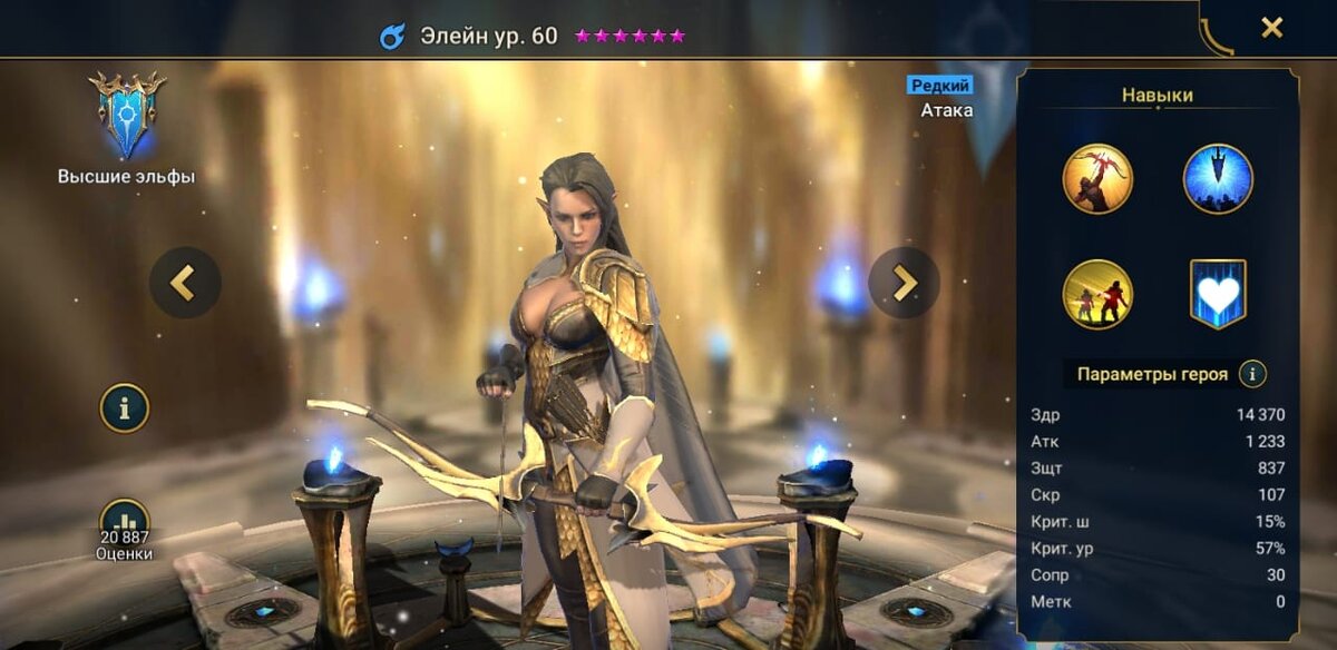 Здравствуйте пишу гайды по персонажам Reid, буду рад комментариям и подписке. Мы уже рассмотрели двух однозначно лидирующих персонажа в предыдущих обзорах. Следующая на очереди Элейн 3)Элейн Странный персонаж с максимальной скоростью, способно наносить самый высокий урок среди стартовой четверки, но только при полностью прокаченном крит шансе и крит уроне. До самых поздних стадий будет помогать на арене и Паучихе. Имеет три навыка требующие крит шанса. 1.Меткий выстрел Атака по врагу. При критическом ударе атакует еще раз. Собственно о чем и речь если крит шанс у вас 100% то мощная двойная атака, при заливе книгами + 25% к урону. Без крит шанса сами понимаете. 2.Небесная стрела Атакует одну цель. Затем всех врагов. Если цель погибает, герой накладывает на себя Бонус крит. шанса 30% на 3 хода. После покраски трех звезд +15% шанс крит удара. Одна из лучших способностей против волн, с заливом крит шанс плюс после прокачки + 20% урон и -1 ход перезарядка. 3.Долина смерти Герой атаку