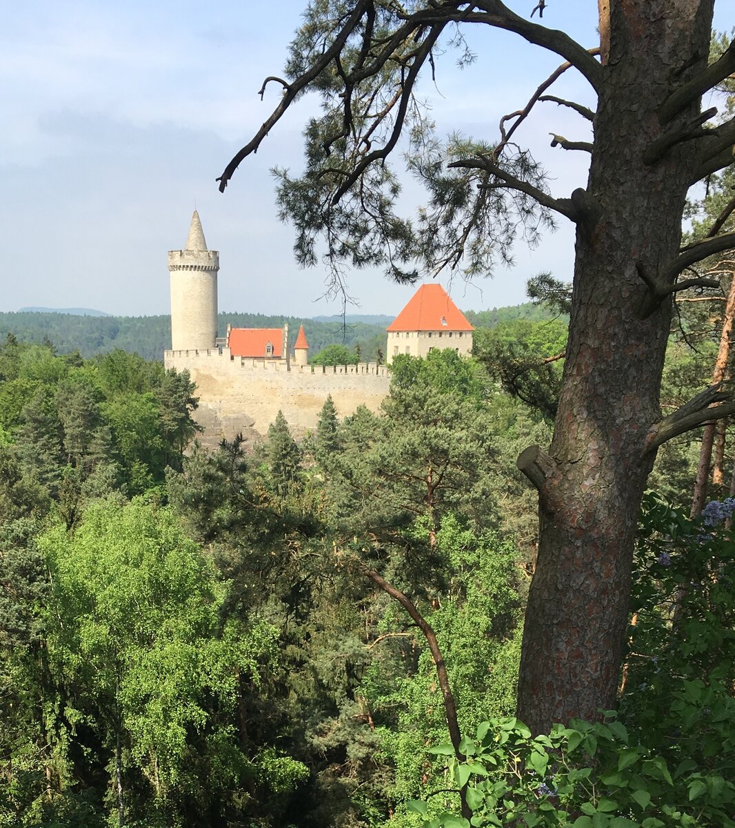 Град Кокоржин - не самый известный чешский замок. Наших туристов там бывает мало, хотя от Праги до него всего километров 60, около часа на машине до местечка Кокоржински Дуль. Есть еще населенный пункт под названием Кокоржин, но замок не в нем - надо ехать или идти еще несколько километров в сторону Кокоржински Дуля. Дорога - поначалу вполне себе прямая, а потом вдруг превращается в извилистый серпантин между поросшими лесом скалами. Зачем туда ехать? Я - попала случайно. Практически залетела на метле. А потом возвращалась еще два раза. Причем, трудно сказать куда. Скорее, даже и не в сам замок, а в окружающие его не совсем обычные места, куда он чудным образом вписался. Природа тут своеобразная. Мы долго шли вверх, к замку, любуясь скалами. Забрались на самую высокую его башню. Оглянулись. И вдруг увидели примерно на уровне наших глаз уходящее вдаль поле с фермой и коровами. Как так, ведь замок фактически стоит на скале? А вот так. Между полем и замком виднелось что-то вроде провала