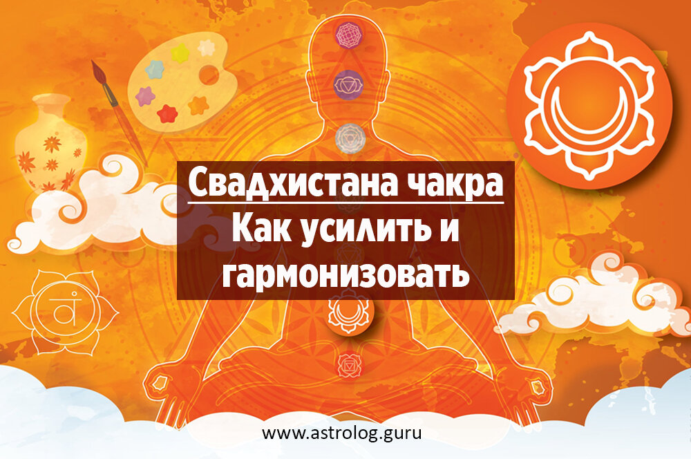 Вторая крестцовая чакра называется свадхистана и она находится в районе живота на два пальца ниже пупка. Она имеет оранжевый цвет и отвечает за сексуальную энергию, чувственность и продолжение рода. У мужчин она пассивна и вращается в здоровом состоянии в левую сторону, а у женщин активна и вращается вправо. Признаки слабой или неправильно функционирующей крестцовой чакры: