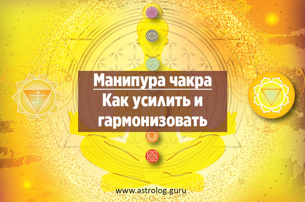 Третья чакра отвечающая за солнечное сплетение называется манипура. Она имеет жёлтый цвет и отвечает за внешние достижения и реализацию в социуме. У мужчин она активна и вращается в здоровом состоянии вправо, а у женщин она пассивна и вращается влево. Признаки слабой или неправильно функционирующей третьей чакры: