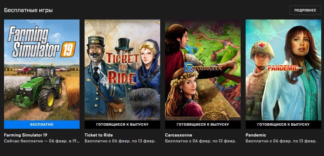 В Epic Games Store обновилось еженедельное предложение, а это значит, что теперь пользователям сервиса стала доступна бесплатно новая игра. Ей стал один из лучших симуляторов фермы — Farming Simularot 19, вышедший в 2018 году. В этой игре геймеры окажутся в роли современного фермера, которому предстоит развить свою ферму на двух больших участках земли (картах). Игроков ждут более 300 сельскохозяйственных машин, а также неограниченные возможности для развития — от ухода за скотом до сбора урожая. До 6 февраля проект будут раздавать бесплатно (вместо 999 рублей), а затем на смену ему придут: Carcassonne, Ticket to Ride и Pandemic. Забрать FS 19 можно по этой ссылке. Больше халявы можно найти тут.