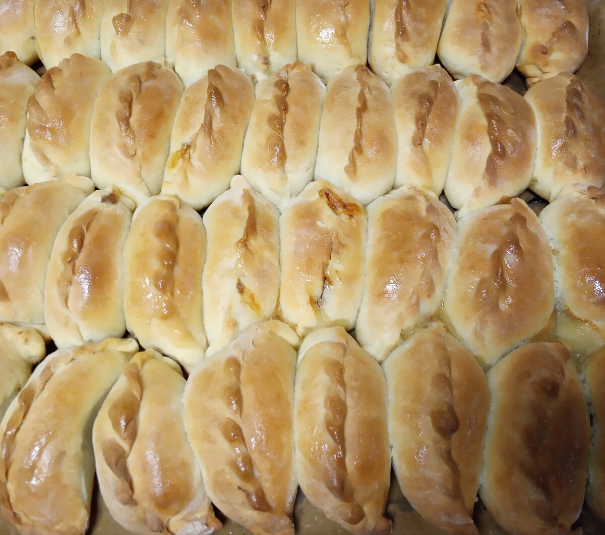 - Подготовить все пирожки, выложить их на противень, застеленный пергаментом.