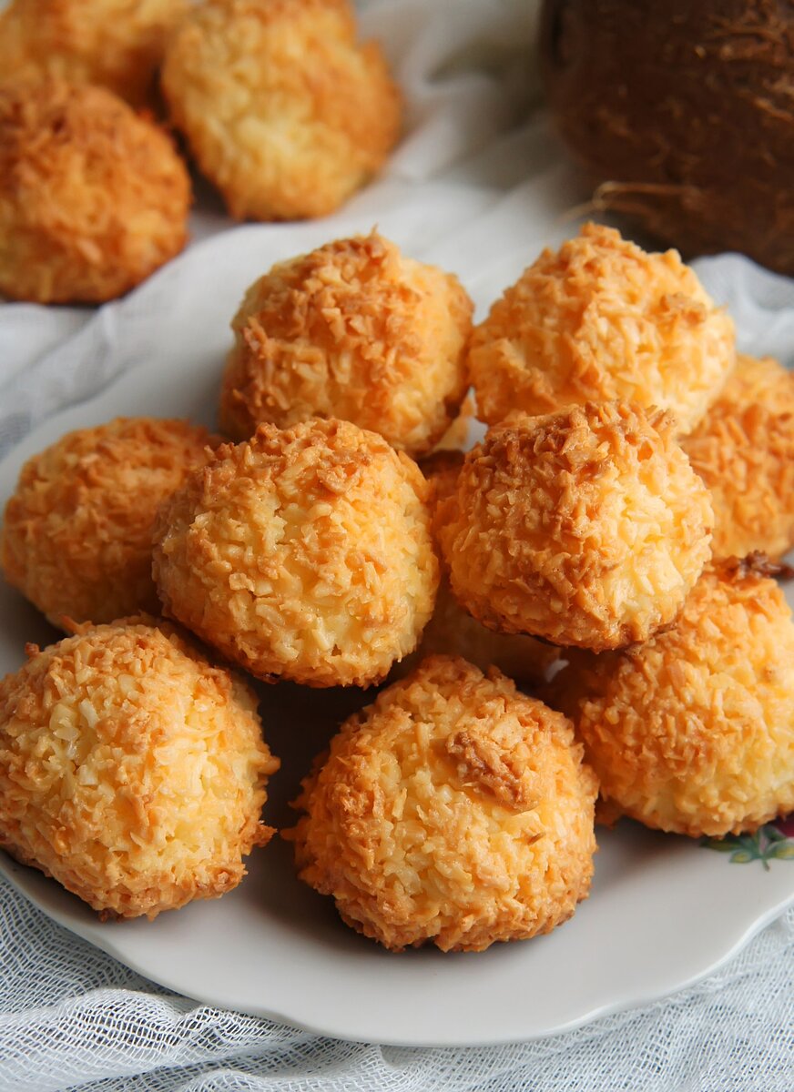 4. Выкладываем наши кокосовые шарики на противень (покрытый пергаментом), ставим в духовой шкаф на 180 градусов на 10-15 минут.