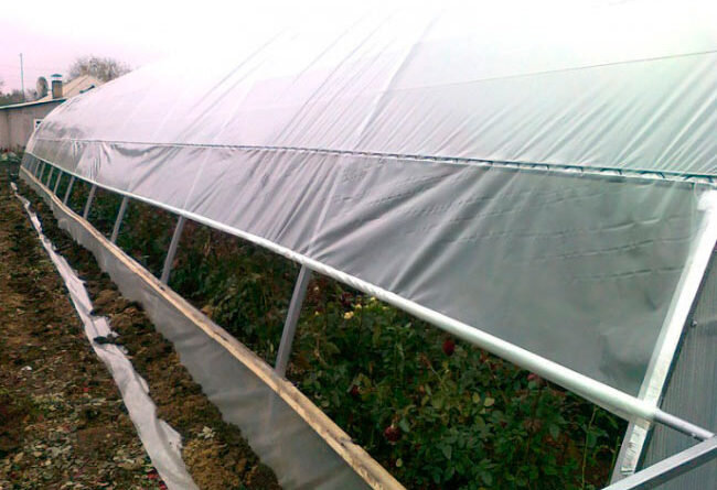 - необходимо проложить между металлически каркасом и пленкой ткань или же бумагу. Солнечные лучи значительно повышают температуру конструкции теплицы, что негативно воздействует на полотно, и приводит к ее износу. Данный способ поможет вам сохранить ее.