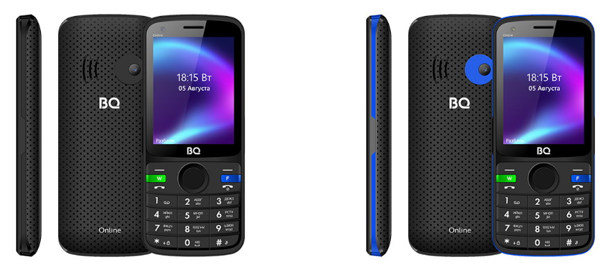 Российский бренд BQ продолжает щедро радовать поклонников собственной продукции интересными, а самое главное, супердоступными по цене новинками. Среди них кнопочник BQ 2400G Online, который можно смело назвать смарт-телефоном. В отличие от многих других представителей своего сегмента, этот аппарат получил поддержку стандарта 3G и беспроводной передачи данных Wi-Fi. Кроме того, на клавиатуре гаджета имеются две яркие клавиши салатового и синего цвета с пометками в виде заглавных букв «W» и «F», обеспечивающие прямой выход в мобильные клиенты популярного мессенджера WhatsApp и социальной сети Facebook. Также новинка оснащена двумя камерами с матричным разрешением 0,3 Мп для фронтального и основного модуля. Слот для SIM-карты здесь только один, однако, этот момент частично компенсирует дисплей с 2,8-дюймовой диагональю и разрешением 320 x 240 пикселей, наличие слота под карту памяти microSD, позволяющего расширить заданные по умолчанию 512 МБ встроенной памяти, ОЗУ 256 МБ, светодиодн