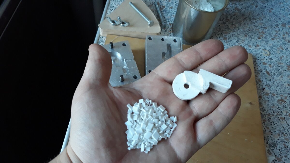 После полного остывания, я раскрутил болты и раскрыл пресс-форму. Но меня ждало разочарование. Моя деталь раскололась на 2 части