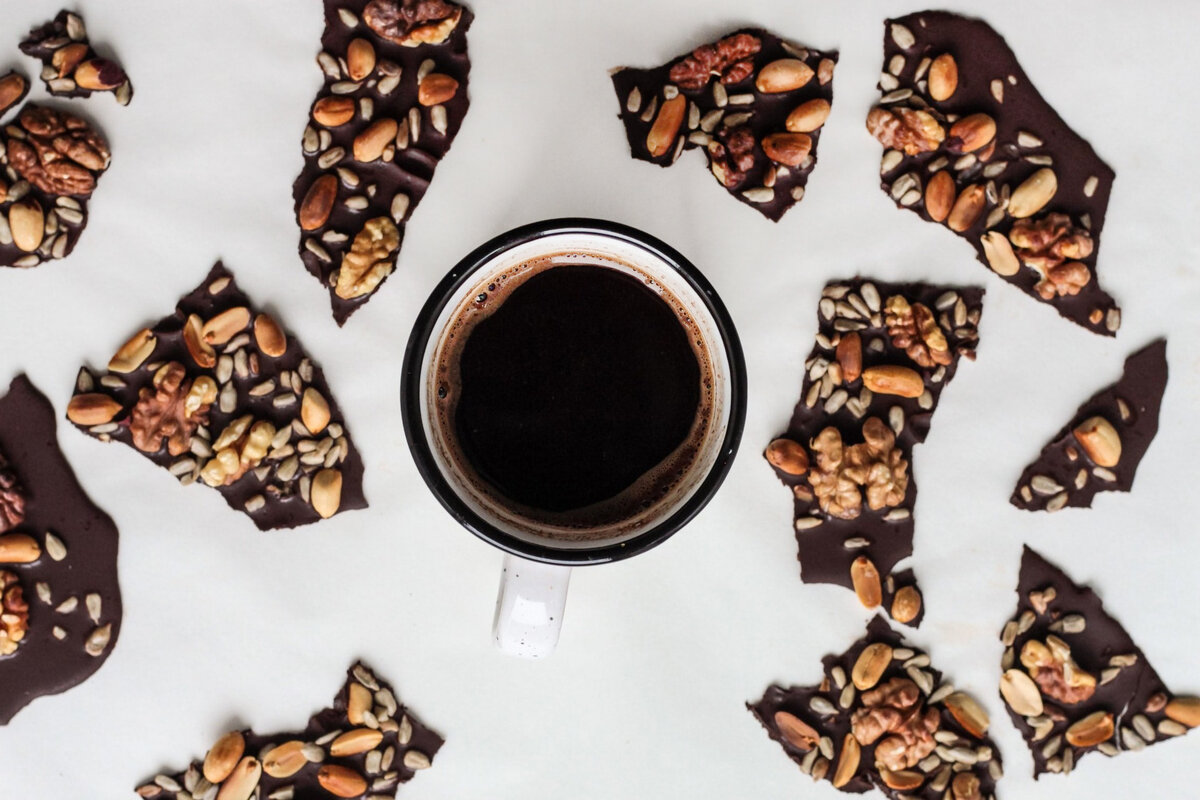 Это простой и безумно вкусный рецепт для тех, кто любит сочетание шоколада с орехами. Не секрет, что в магазине редко можно найти такую шоколадку, чтобы орехов положили от души) Шоколад - самый популярная сладость в мире. А между прочим это не только лакомство, но и полезность, ведь шоколад в большом количестве содержит кофеин и антиоксиданты, которые помогают нам бороться со стрессом и поднимают настроение за счет выработки гормонов счастья и эндорфинов. Главное — не допускать передозировки этого антидепрессанта: ведь вряд ли вас будут радовать приобретенные после шоколадной терапии лишние килограммы :) Для приготовления "Метеорита", нам понадобится: Для приготовления вы можете выбрать любой шоколад - черный, молочный, белый. Каждый из них сделает десерт особенным. К примеру, черный придаст насыщенный вкус, а белый необычайную сладость при соединении с орешками. Приготовление: 1. Подготовьте орехи и семечки. Арахис предварительно нужно немного обжарить. После измельчите орехи
