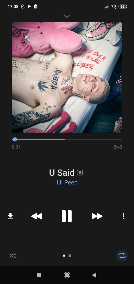 My favourite song is "U Said". It was written by Lil Peep. He is very tallanted american musician. Unfortunaly he dyed in 2017, but his creations are in my heart forever. He was rather popular when his was alive, but when he dyed whole world found out about this greates person. First of all I'd like to say that it is very multifunctional song for every type of feelings. As I remember I listened it in a very hard periods of live and it helped me to go away from problems and thoughts for 4 minutes of listening! I was at party when I heared it for a first time and it gave me an extra energy for continiuning the feast. Moreover I begin every morning with this song cause it motivates me for deals . Song splited on three parts. First one(00:00-01:50) doesnt't look very unusual due its classical for this genre pace. Second one(01:50-02:07) is transition for the next part and it makes you feel a bit different because first part is a bit annoying and this transition works as reboot, that pre