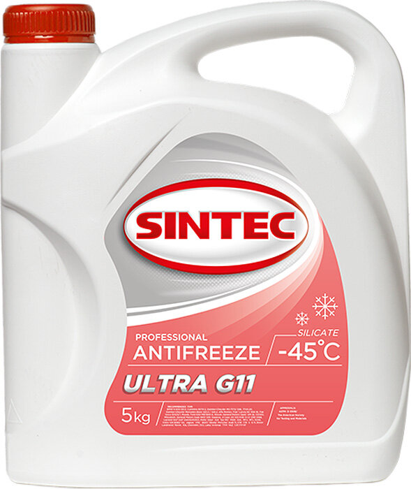 1. Sintec Ultra G11. Охлаждающая жидкость последнего поколения. Антифриз обеспечивает долгосрочную работу, и конечно же эффективность, самая главная особенность этой жидкости, в том что он остаётся работоспособным при температуре до -45 градусов, так же низкая