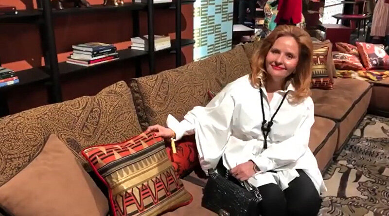 В апреле 2019 г. в миланском экспозиционном центре Rho Fiera состоялась очередная, 58-я по счёту выставка Saloni Del Mobile 2019. Концептуально она была посвящена памяти Леонардо ла Винчи, покинувшему мир 500 лет назад. Приоткроем завесу одного из крупнейших событий в сфере интерьерной индустрии вместе с российским дизайнером интерьеров Анжеликой Прудниковой. Самобытность и уют в помещении задают тканые материалы, которые традиционно применяются в обивке мягкой мебели, портьерах, гардинах, покрывалах, скатертях, декоративных подушках, панно, а также коврах. В одном из залов выставки были представлены примеры использования текстиля в ретро-интерьерах. Анжелика обращает наше внимание на объёмную крупноформатную декоративную композицию в форме дерева. Инсталляция объединила в себе десятки лоскутов различных тканей, собранных в технике пэчворка. В выставочном павильоне, который исследует наш дизайнер, представлена мягкая мебель. Длинный диван с обивкой трюфельного оттенка коричневого ц