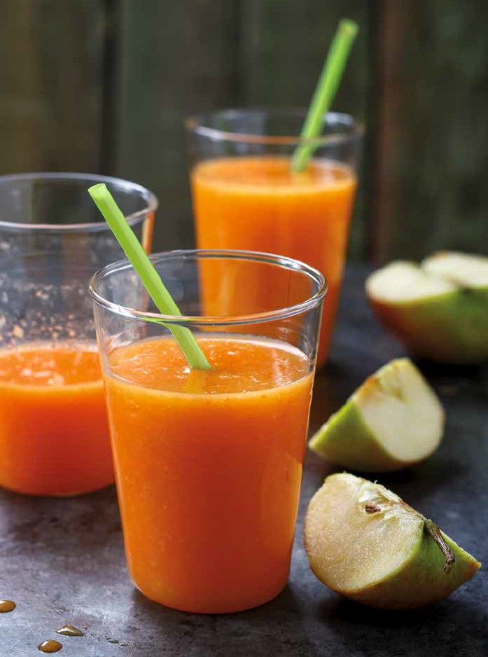Свежие домашние напитки полны витаминов, энергии и полезны для человеческого организма,они бесценны. Этот полезный эликсир наверняка поддержит всю семью. Ингредиенты: Приготовление: Вымойте фрукты и овощи. Разрежьте яблоки на четыре части и удалите косточки. Очистите апельсины и разрезать их на четвертинки. Нарежьте морковь на более мелкие кусочки. Очистить имбирь. Все готовые продукты прокрутите через соковыжималку. Смешайте и подайте на стол. СОВЕТ: Для более сладкого вкуса вы можете добавить грушевый сок. Так же можете использовать оставшуюся мякоть сока, чтобы приготовить торт или блин.