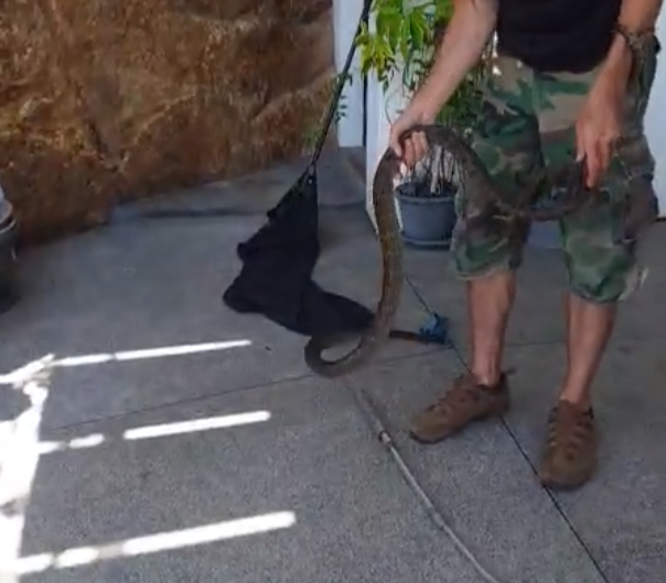 Была поймана змея большеглазый полоз( Ptyas mucosa) длиной около 2 метров. Необычная змея для Самуи, они редко встречаются на острове. Но если и встречаются, то, как правило, в южной части острова. Чаще можно встретить кобру, чем эту не ядовитую змею. Она забралась в дом, в служебную комнату для водного насоса. Для её поимки были вызван фонд по защите змей. Ловец успокоил хозяев, сказав, что она не ядовита! Она была выпущена в этом же месте. Если честно, я всё-таки думаю, что её лучше бы надо вывести подальше от людей, так как люди могут убить её из-за страха. Как сказал ловец змей: "Хорошо иметь такую змею вокруг своей собственности, так как они ловят крыс и других грызунов" .