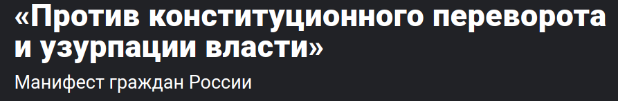Сегодня мы, граждане Российской Федерации, заявляем, что на наших глазах в стране происходит конституционный переворот. Мы уверены, что цель этого переворота — пожизненное сохранение у власти Владимира Путина и его коррумпированного режима.