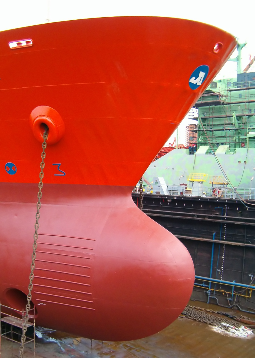 Эта штука не видна над поверхностью воды, и представляет собой каплевидное утолщение в подводной, носовой части корабля. Дело в том, что, когда корабль идет, он расталкивает толщу воды своим носом, из-за чего создается зона повышенного давления. Это увеличивает расход топлива и снижает скорость. Бульб же и является решением проблемы: благодаря ему количество воды в волнах, образованное носом корабля снижается. Более того, он также снижает силу волны, образованную форштевнем. Бульб наиболее эффективен: для узких и длинных кораблей, для судов, с длиной по ватерлинии более 15 м, при высоких скоростях. Если эти условия соблюдаются, то экономия топлива на судах составляет примерно 12-15 процентов. Впервые бульб использовали американцы на своем линкоре «Дэлавер» в 1910 году, изобретателем является Дэвид Уотсон Тэйлор – главный конструктор американского военного флота. В 1920-х это усовершенствование конструкции корабля позволило немецкому пассажирскому лайнеру «Бремен» развить скорость в
