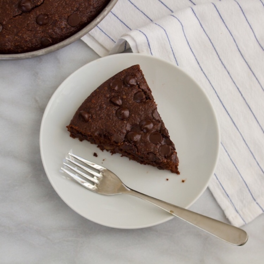 Ингредиенты: Приготовление: Шаг 1 Разогрейте духовку до 180 градусов по Цельсию. Выровняйте дно 23-х сантиметровой круглой формы для выпечки пергаментной бумагой; слегка смажте кулинарным спреем. Шаг 2 В средней миске смешайте овсяную муку, фундук, какао-порошок, разрыхлитель, соль и пищевую соду. Отложить в сторону. Шаг 3 В большой миске смешайте яйца, кокосовое масло, кленовый сироп, банан и ваниль, пока они хорошо не смешаются. Добавьте смесь овсяной муки к яичной смеси, помешивая, пока хорошо не смешается. Размешайте 4 столовые ложки шоколадной стружки. Вылейте и разложите жидкое тесто в подготовленную кастрюлю; посыпте оставшимися 2 столовыми ложками шоколада. Шаг 4 Выпекать 25-30 минут. Остудить полностью в кастрюле. Нарезать и подавать.