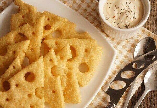 #от2лет Ингредиенты: - 100 гр. сливочного масла; - 100 гр. пшеничной муки; - 100 гр. сыра; - 1 яичный желток; - соль, перец, специи — по вкусу. Приготовление: 1. Твердый сыр измельчите в блендере. Лучше выбирать не слишком соленый сыр, подойдет — сливочный. Холодное масло с мукой и желтком размешайте в блендере. 2. Добавьте в масляно-мучную смесь твердый сыр. На этом этапе в тесто можно добавить кунжут и специи, если хочется. 3. Сформируйте из теста шарик, заверните его в пленку и поставьте в холодильник на 30 минут. 4. Раскатывайте тесто в круг, делай в нём отверстия с помощью трубочки и разрезайте на аккуратные треугольные кусочки. 5. Выпекайте хрустящую закуску в течение 10 минут при температуре 180 градусов. Приятного аппетита Вам Колобок Румяный Бок
