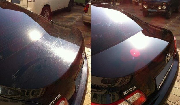 Полировка автомобиля даст былой блеск вашей ласточке, скроет мелкие царапины и в дальнейшем защитит от коррозии. Но есть и свои моменты. Даже новые автомобили имеют дефекты ЛКП. Некоторые автомобили полируют перед продажей или перед тем как загонят в шоурум автосалона, а что уж тут говорить о автомобилях которые проехали не один десяток км. или даже сотни. бывает три типа полировки. Защитная полировка с эпоксидной смолой - самая доступная по цене Эффект держится до полугода. При такой полировке не используют абразивные материалы. При этом полироль на основе эпоксидки покрывает кузов дополнительным тонким слоем, защищающим узов от влаги, реагентов, царапин и выгорания на солнце. Защитная полировка средствами с жидким стеклом более эффективна, но обойдется в 3-4 раза дороже, чем эпоксидная. Она также делается без использования абразива. Такая полироль связывается с лакокрасочным покрытием на молекулярном уровне, дает ему надежную защиту и сохраняет сияющий вид кузова в течение трех
